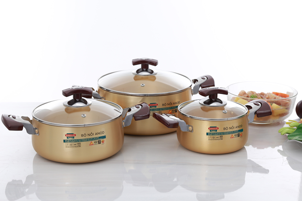 Đặc điểm Bộ 3 nồi nhôm anod nắp kính Sunhouse SH6634