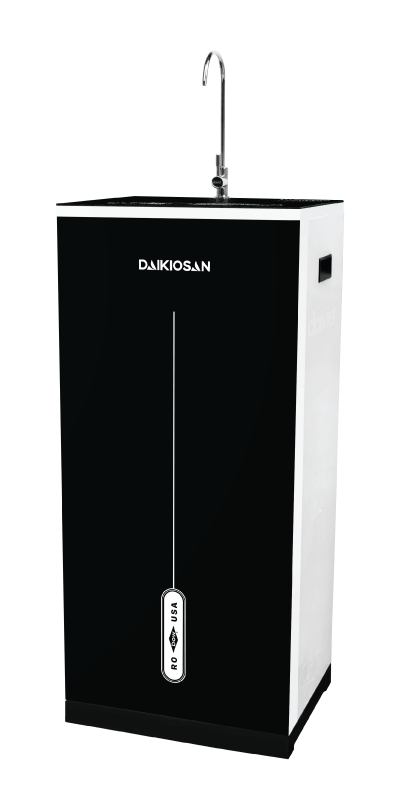 Máy lọc nước Daikiosan kiểu tủ đứng gọn gàng, mặt kính mỹ thuật đẹp mắt, sang trọng