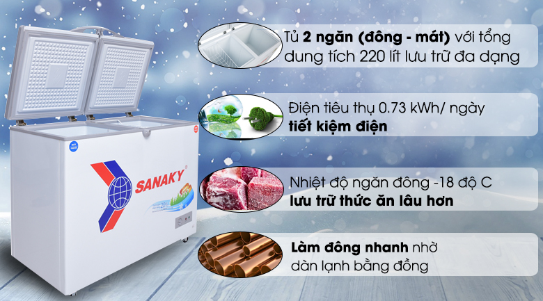 Tính năng nổi bật tủ đông Sanaky 220 lít VH-2899W1